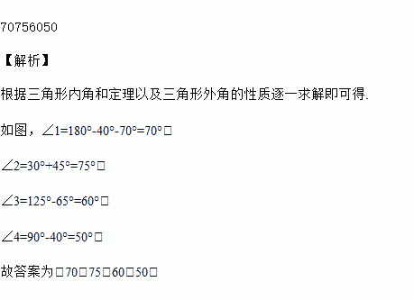 如图,∠1=___°,∠2=___°,∠3=____°,∠4=____°.