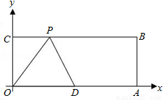 如图,在平面直角坐标系中,矩形OABC的顶点A、C的坐标分别为(10,0),(0,4),点D是OA的中点,点P在BC上运动,当△ODP是腰长为5的等腰三角形时,点P的坐标为______.