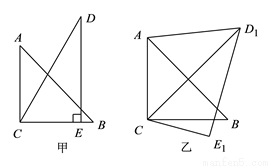 把一副三角板如图甲放置,其中, , ,斜边, ,把三角板绕着点顺时针旋转得到(如图乙),此时与交于点,则线段的长度为( ).