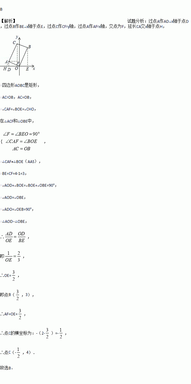 如图,在矩形AOBC中,点A的坐标是(-2,1),点C的纵坐标是4,则B,C两点的坐标分别是( )