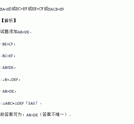 如图,点B、E、C、F在一条直线上,AB∥DE,且AB=DE,请添加一个条件_____,使△ABC≌△DEF.