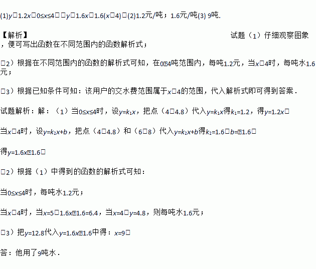 (3)若某用户该月交水费12.8元,求该户用了多少吨水.