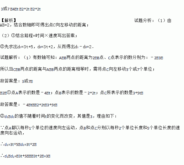 (2)点A、B、C开始在数轴上运动,若点A以每秒1个单位长度的速度向左运动,同时,点B和点C分别以每秒2个单位长度和5个单位长度的速度向右运动,运动t秒钟过后: