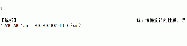 如图,将△OAB绕点O按逆时针方面旋转至△0A′B′,使点B恰好落在边A′B′上.已知AB=4cm,BB′=1cm,则A′B长是______cm.