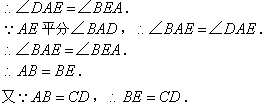 已知,如图,在平行四边形ABCD中,∠BAD的平分线交BC边于点E.求证:BE=CD.
