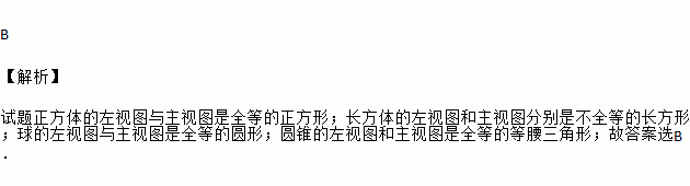 在下面的四个几何体中,左视图与主视图不相同的几何体是