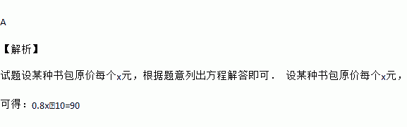 超市店庆促销,某种书包原价每个x元,第一次降价打“八折”,第二次降价每个又减10元,经两次降价后售价为90元,则得到方程( )
