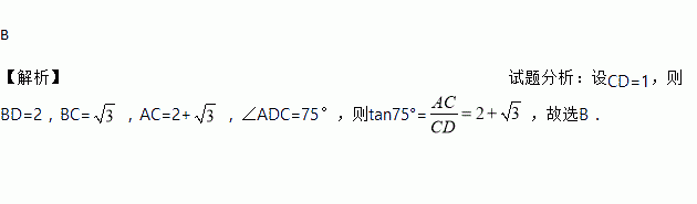 如图:∠C=90°,∠DBC=30°,AB=BD,利用此图可求得tan75°的值是( )