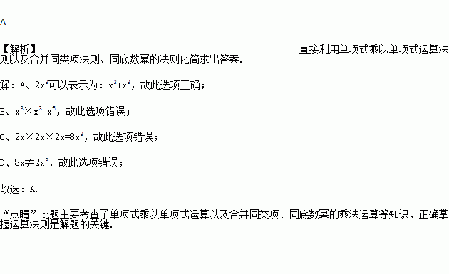 A. x3+x3 B. x3·x3 C. 2x·2x·2x D. 8x