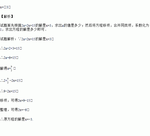 小王在解关于x的方程2a﹣2x=15时,误将﹣2x看作+2x,得方程的解x=3,求原方程的解.