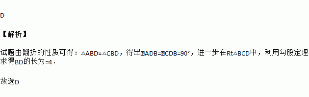 如图,点D在△ABC的边AC上,将△ABC沿BD翻折后,点A恰好与点C重合,若BC=5,CD=3,则BD的长为( )