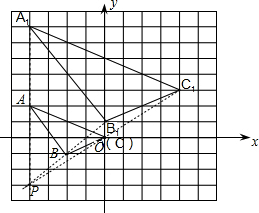 解:∵△ABC的三边分别扩大一倍得到△A1B1C1(顶点均在格点上),它们是以P点为位似中心的位似图形,根据位似图形的性质,