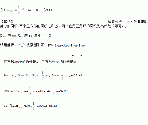 如图,正方形ABCD和正方形ECGF的边长分别为a和6,
