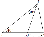 如图,在△ABC中,AD平分∠BAC且与BC相交于点D,∠B=40°,∠BAD=30°,则∠C的度数是( )