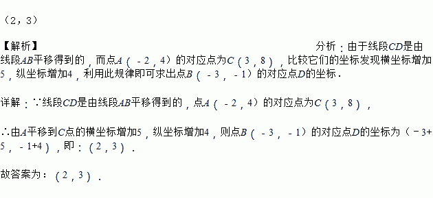 线段是由线段平移得到的,点的对应点为,则点的对应点的坐标为_________.