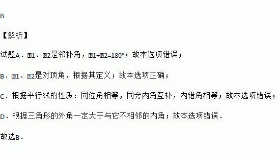 下面四个图形中,∠1=∠2一定成立的是( )