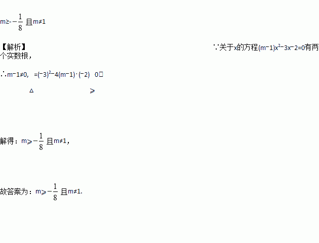若关于x的方程(m-1)x-3x-2=0有两个实数根,则m的取值范围是_________.
