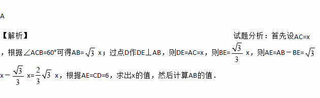 某校研究性学习小组测量学校旗杆AB的高度,如图在教学楼一楼C处测得旗杆顶部的仰角为60°,在教学楼三楼D处测得旗杆顶部的仰角为30°,旗杆底部与教学楼一楼在同一水平线上,已知CD=6米,则旗杆AB的高度为( )