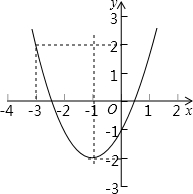 二次函数y=x2+2x-1,当-3<x<0时,y的取值范围