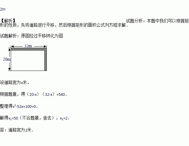 如图,在宽为20m,长为32m的矩形地面上修筑同样宽的道路(图中阴影部分),余下的部分种上草坪.要使草坪的面积为540m2,则道路的宽为 .