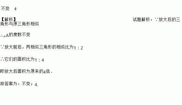 一个2倍放大镜去看△ABC,则∠A的大小___;面积大小为原来的___倍.