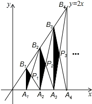 解:∵A1、A2、A3、…、An、An+1是x轴上的点,且OA1=A1A2=A2A3=…=AnAn+1=1,分别过点A1、A2、A3、…、An、An+1作x轴的垂线交直线y=x于点B1、B2、B3、…、Bn、Bn+1,