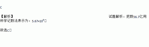 “犯我中华者,虽远必诛”爱国题材影片《战狼2》的票房喜获丰收,高达56.7亿元,把数56.7亿用科学记数法表示为( )