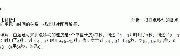 如图,一个点在第一象限及x轴、y轴上运动,在第一秒钟,它从原点(0,0)运动到(0,1),然后接着按图中箭头所示方向运动,即(0,0)→(0,1)→(1,1)→(1,0)•••,且每秒移动一个单位,那么第64秒时这个点所在位置的坐标是( )