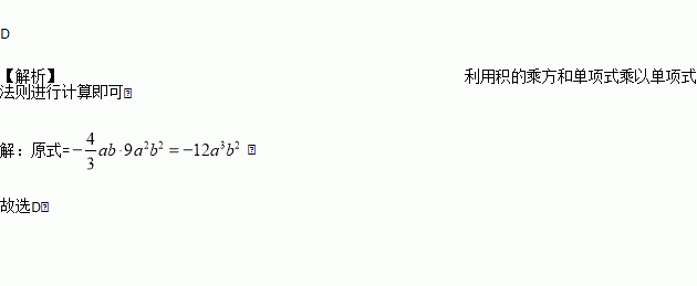 A. 4a2b2 B. -4a2b2 C. 12a3b3 D. - 12a3b3