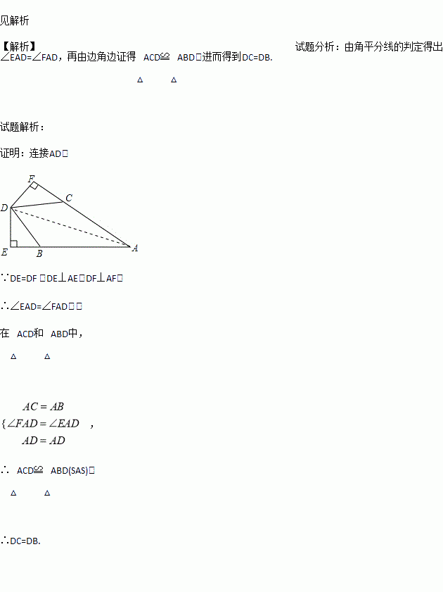 已知,如图,AB=AC,DE=DF,DE⊥AB于点E,DF⊥AC于点F,求证:DB=DC.