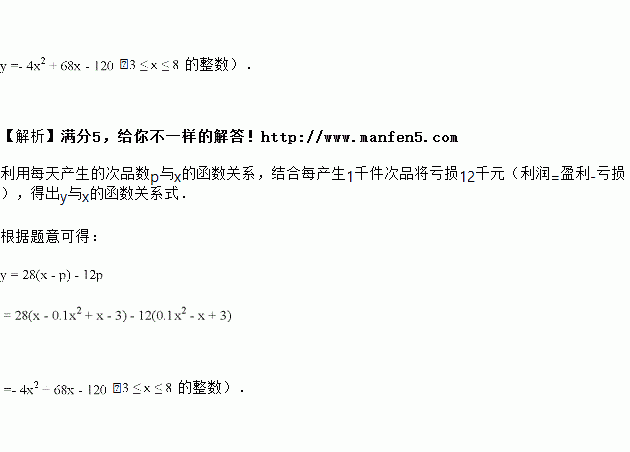 盈利-亏损),试写出该工厂每天生产这种元件所获利润为![]()