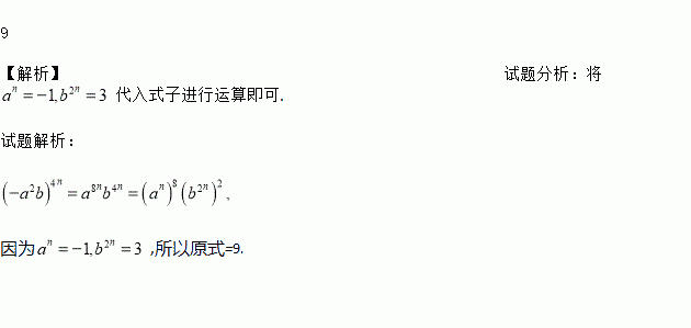 已知an=-1,b2n=3,求(-a2b)4n的值.