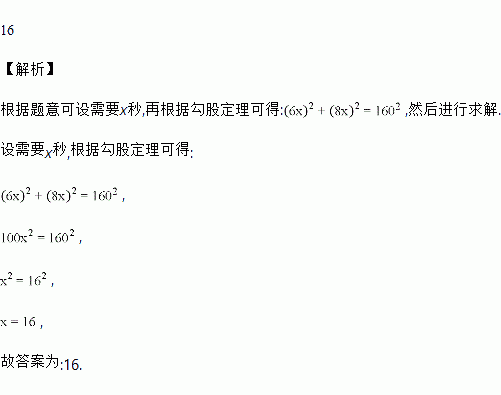 小明和小强的跑步速度分别是6 m/s和8 m/s,他们同时从同一地点分别向东、南两个方向练习跑步,那么他们出发________s后相距160 m.