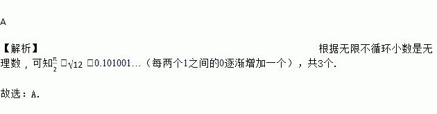 下列各数:,,,,,0.101001…(每两个1之间的0逐渐增加一个)中,无理数有( )个.