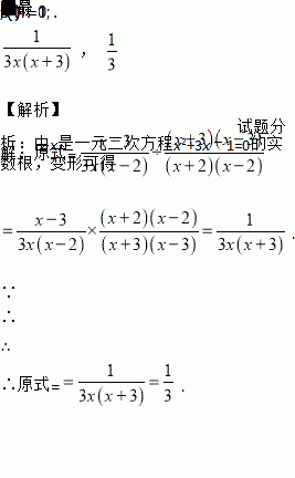 已知x是一元二次方程x2+3x﹣1=0的实数根,求代数式: 的值.