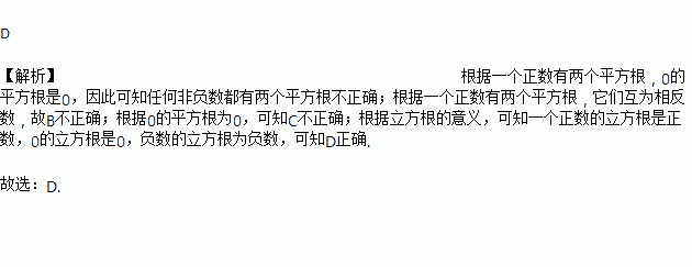 C. 只有正数才有平方根 D. 任何数都有立方根