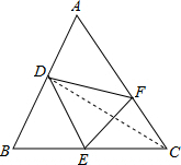 已知:如图,在△ABC中,D为AB的中点,E、F分别为BC、AC边上的点.请你判断一下S△DEF与S△ADF+S△BDE的大小关系,并证明.