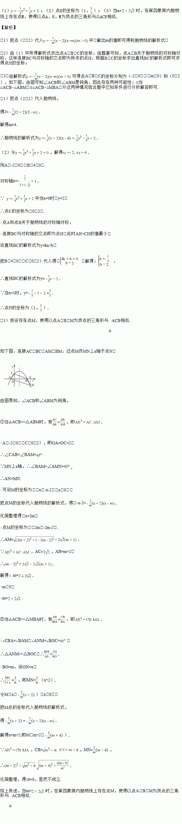 (3)在第四象限内,抛物线上是否存在点M,使得以点A,B,M为顶点的三角形与△ACB相似?若存在,求出m的值;若不存在,请说明理由.