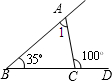 度.分析:根据三角形的外角性质得到∠ACD=∠1+∠B,然后把∠ACD=100°,∠B=35°代入计算即可得到∠1的度数.