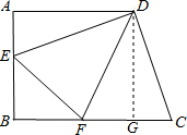分析:过D作DG⊥BC于G,由已知可得四边形ABGD为正方形,然后利用正方形的性质和已知条件证明△ADE≌△GDC,接着利用全等三角形的性质证明△EDF≌△CDF,由tan∠ADE=