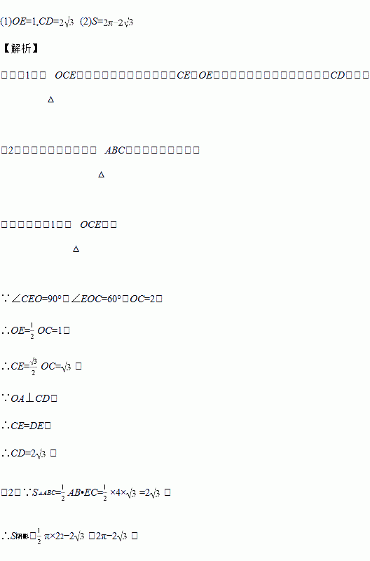 如图,已知AB是⊙O的直径,弦CD⊥AB,垂足为E,∠AOC=60°,OC=2.