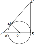 解答 解:连接OD,如图,设⊙O的半径为r,![]()