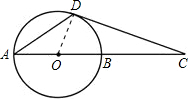 分析:CD与⊙O相切于点D,则连接OD,∠CDO=90°,求∠CDA的大小的问题可以转化为求∠ADO的问题.