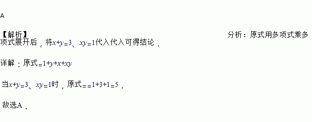 若x+y=3且xy=1,则代数式(1+x)(1+y)的值等于( )