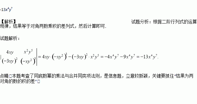符号称为二阶行列式,规定它的运算法则为: .例如: