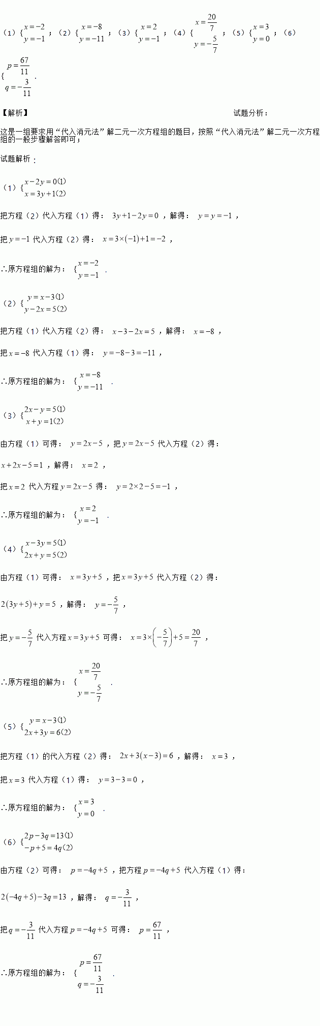 用代入消元法解下列方程