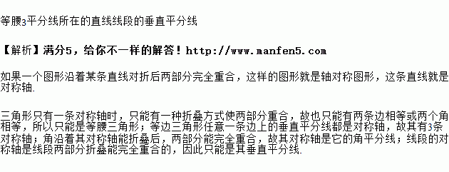 只有一条对称轴的三角形是______三角形;等边三角形是轴对称图形,它的对称轴有_____条;角的对称轴是这个角的_______;线段的对称轴是_________.