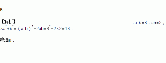 已知a﹣b=3,ab=2,则a2+b2的值是( )