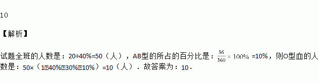 小明同学根据全班同学的血型绘制了如图所示的扇形统计图,已知A型血的有20人,则O型血的有____人.