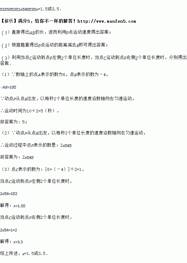 如图,已知数轴上的点A表示的数为6,点B表示的数为﹣4,点C是AB的中点,动点P从点B出发,以每秒2个单位长度的速度沿数轴向右匀速运动,设运动时间为x秒(x>0).